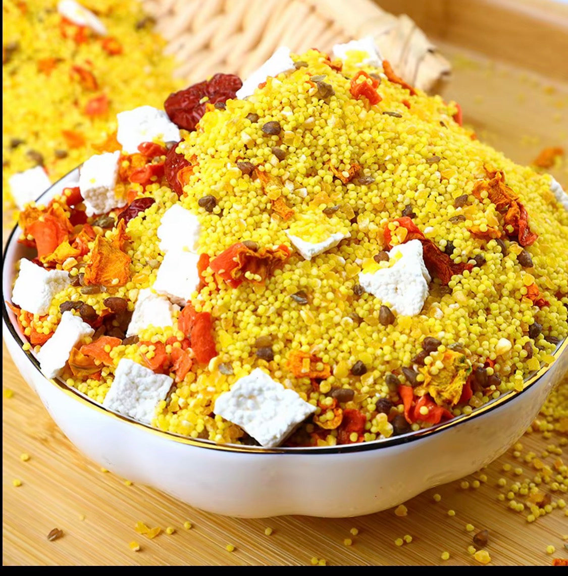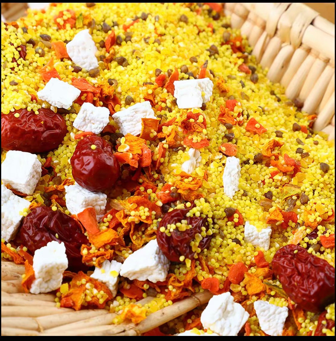 ▪️ 配料:小米、玉米渣、南瓜丁、胡萝卜、山药丁、红枣、苦荞米