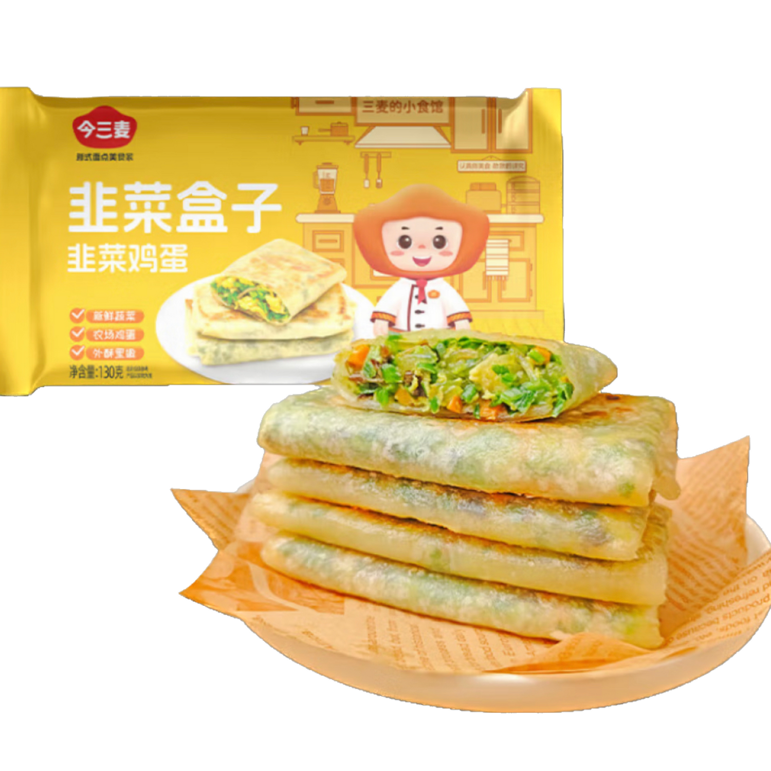 “今三麦韭菜盒子 —— ❄️冷冻锁鲜,酥脆鲜香,咬一口满嘴春天味!” 💚🥟✨