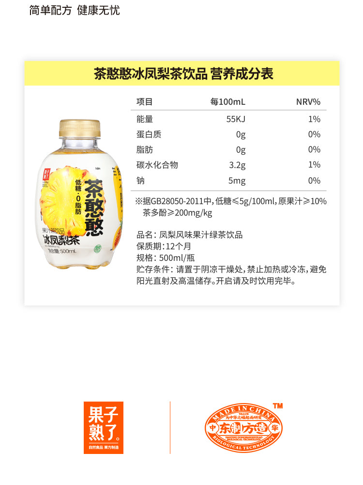 【果子熟了】茶憨憨 冰凤梨茶 果汁茶饮品 500ml*12